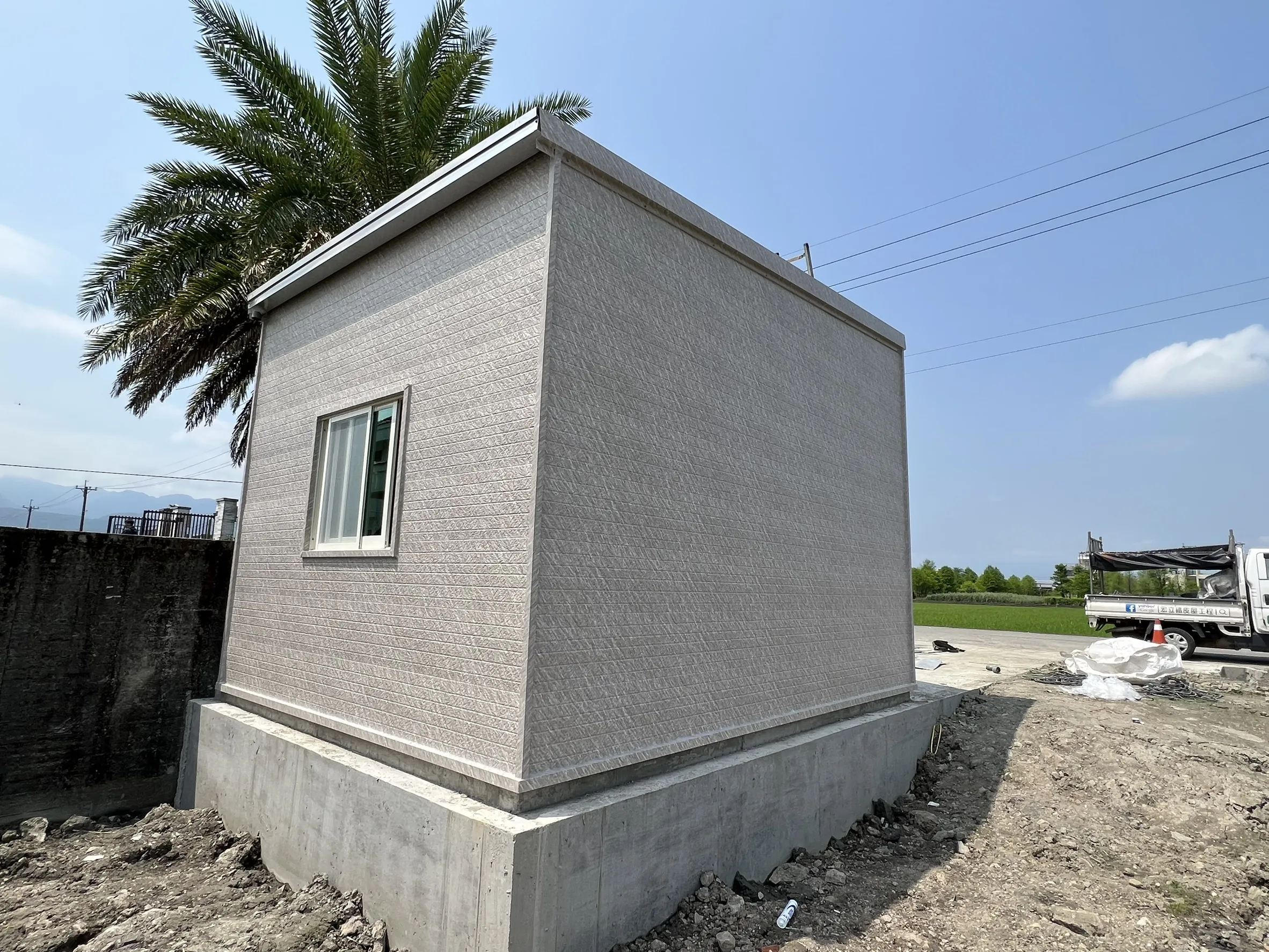 這次在宜蘭員山協助業主完成一間資材室外牆施作,主要以花崗岩風鍊石板材做外牆包覆,讓空間在實用之外,也多了更耐看的外觀質感。